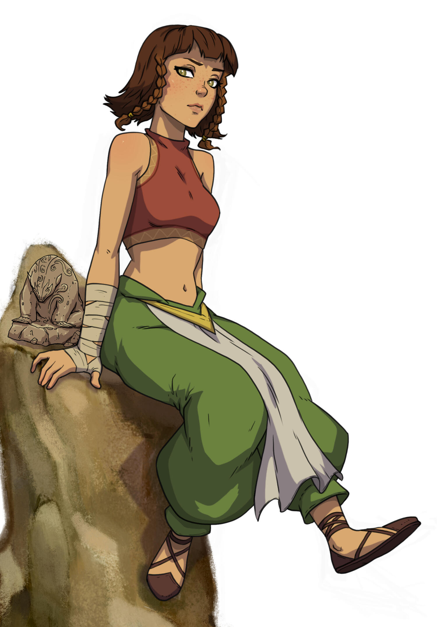 Yu-Ming was born and raised in Zhuzi, a quiet village hidden in the bamboo jungles of Gintong, Earth Kingdom, to Engiin and Chánxīn Liú. She’s the second of two children, after her older brother, Xīnyú.Yu-Ming had a pleasant upbringing for the most part; She enjoyed swinging through the trees with her brother, playing with the other kids by making mazes and carving animal statues then moving them with her bending, and particularly goofing off and playing pranks with her Dad.She was also naturally gifted, be it physically, showing an intuitive understanding of earthbending, socially, striking up conversation and making friends with ease, or even spiritually, treating the jungle like a close companion, always reverting her earthbending and being mindful of the bamboo stems she cut so she didn't harm it.