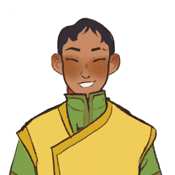 Engiin is Yù-Míng’s enigmatic, musical father. Born in Zhuzi, as soon as he could speak Engiin wanted to travel the world and see everything it had to offer, and after his father, Osuul, fixed up a broken dramyin (6 string lute) for him, his future as a nomadic musician was set. He soon joined a circus, and made many friends across the world, eventually meeting his wife, Chánxīn, who he fell hopelessly in love with, even taking her last name.Engiin takes charge when it comes to lightening the mood, and often embodies being a beacon of positivity, which gravitated Chánxīn towards him. He makes jokes almost religiously, and sometimes finds it difficult to actually take things seriously, which often frustrates Chánxīn.Engiin is an absolutely doting father to Yù-Míng, besides naming her 'brilliant jade' for how he views her, he nicknames her, “boop” to tease her and juxtapose her headstrong nature. He tries his best to relate to his daughter, despite being a non-bender, and encourages her with everything she does. He has a large collection of all of Yù-Míng's attempts at different hobbies, and treats them all like priceless treasures, much to her embarrassment.He’s Yù-Míng’s safe place in a way, he's one of the only people in her life that will love her fully and unconditionally, and show her that. Even though he tends to stray away from conflict, and keep things cool and collected, when it comes to his daughter he’d move mountains.